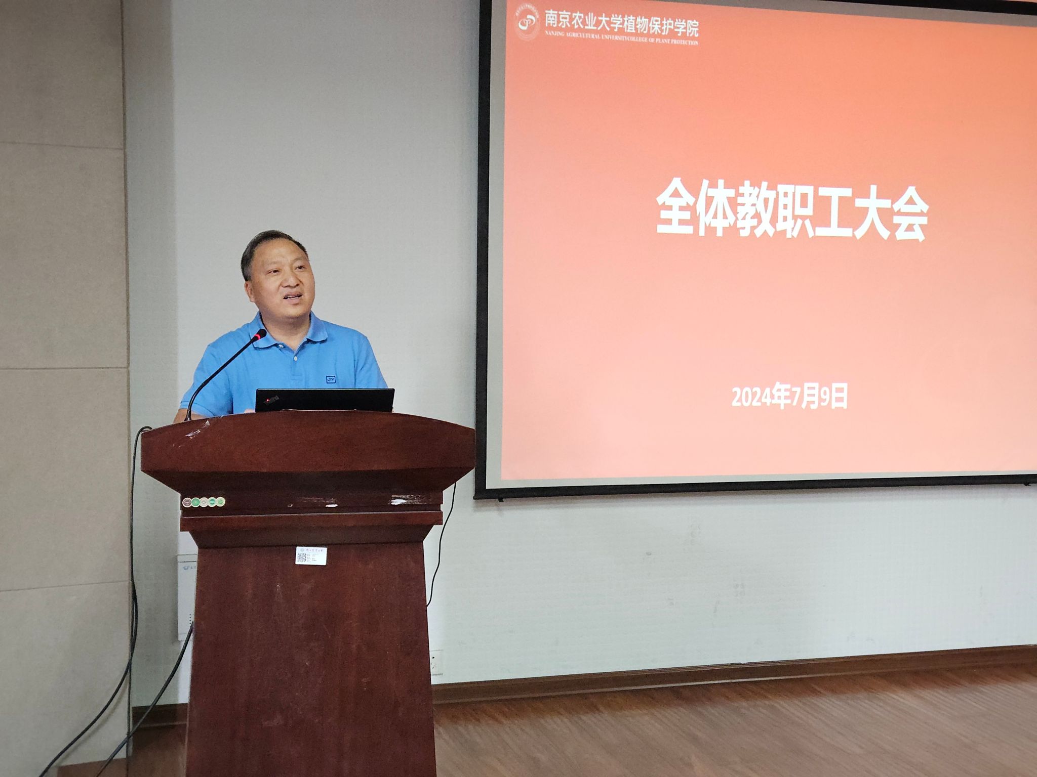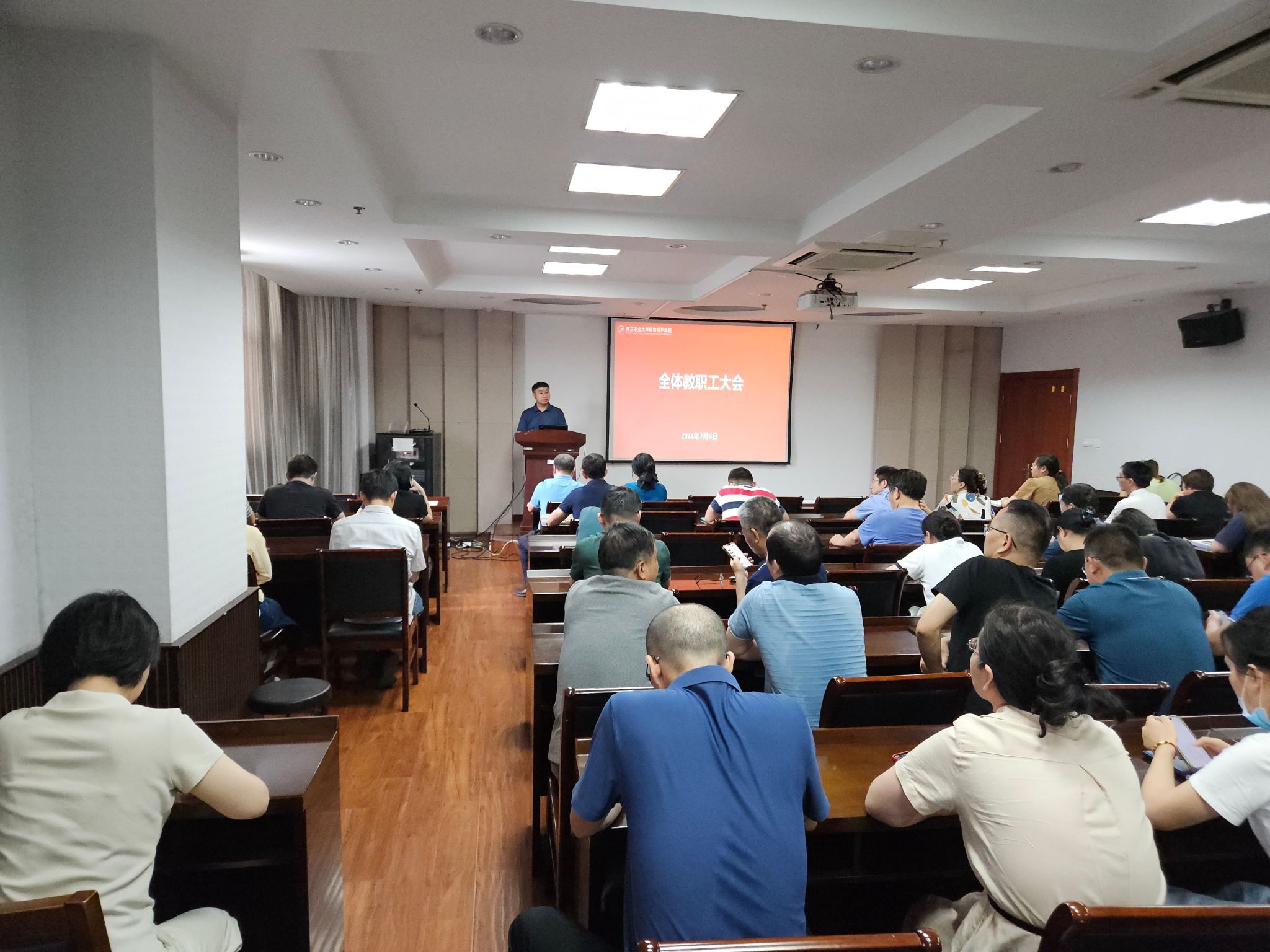 在理科楼C303会议室召开全院教职工大会,成人视频领导班子及全院教职工参加会议,会议由成人视频党委书记许承保主持。