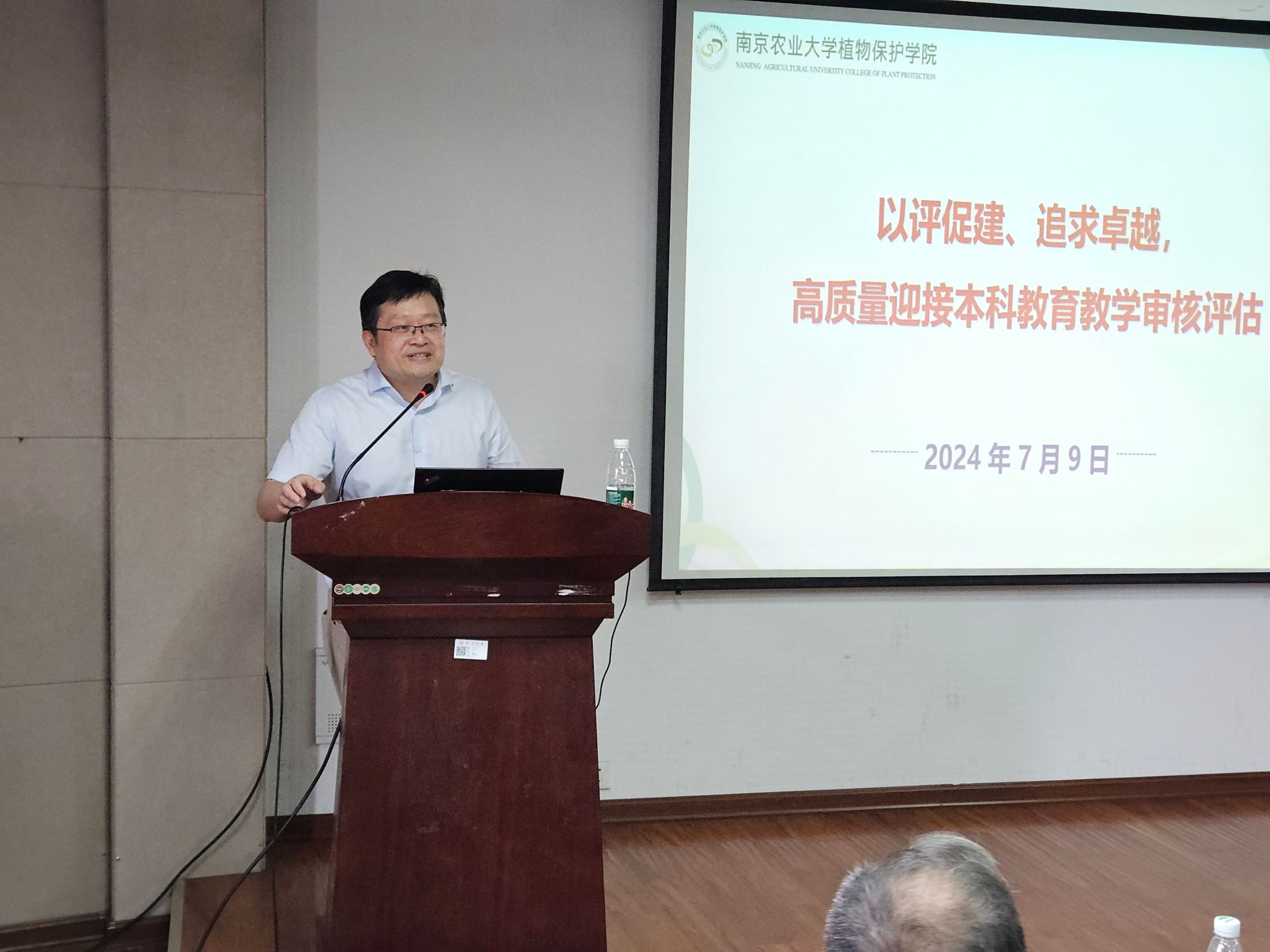校人力资源处副处长、人才办副主任叶永浩受邀作《以评促建 追求卓越:高质量迎接本科教育教学审核评估》专题报告。他围绕教育部本科教育教学评估工作,从新一轮本科教育教学审核评估、本科教育教学审核评估专项评估、植物保护专业概括、植保专业教育教学质量保障体系建设等四方面进行介绍,梳理了高等教育评估40年发展历程,就教育教学评估流程、体系、新格局等方面做出深入解读,呼吁全院师生以此为契机,全面梳理教育教学工作,持续提升教学质量,推动成人视频教育教学事业再上新台阶。